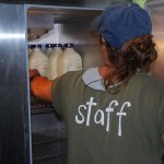 This summer we are getting milk from four cows for all of our F&W camps- two first calf heifers (Rhubarb and Hibiscus) and two cows (Rachel and Strawberry). We are trying to get everyone, campers and staff alike, up to speed on milking so that we get most of the milk into the bulk tank (instead of on the floor). Once that happens, we should be pretty close to supplying the kitchens with most of the milk they need.