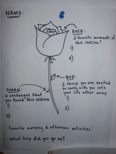 Trips were a success with happy campers returning from fire building, trail mix, and fun-on-the-go games. On a First Lodge trip they had a Silent Meeting. Campers had been on-and-off homesick and, during the meeting, campers starting realizing camp was a new place to grow, have fun, and discover a new family! On the last night, the campers made a fire all by themselves. The Little Rock Pond trip stopped to have a Silent Meeting at a beautiful spot and campers called it sacred. The Farm Service trip had reflection time every evening. They all shared a rose, bud, and thorn from the day. Some campers got creative and shared a peach, fuzz, and pit or rock, shovel, dirt. On the last night there were NO thorns!
