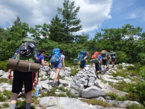 On July 2, I left SAM Camp and drove down to see the Long Trail Questers at Story Spring Shelter. After some awesome rain showers we were able to get all the fresh food and some clean clothes from the van to the campsite (a 2.4 mile hike, one way!) and enjoy a dinner of burritos with fresh lime, cilantro, and avocado! The following day was filled of stories as we hiked. I heard about the Appalachian Trail through-hikers they had met along the trail and a silent time that ended with breakfast on top of a fire tower in the morning fog. Everyone’s spirits were high when we got a chance to take a dip in a chilly stream that crossed the path. Showers were improvised and songs were sung in cool waters. Before we set back on the trail, we had our Silent Meeting along the babbling brook.