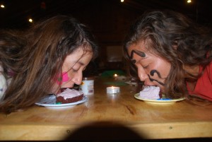The Un-birthday celebration included eating cake without utensils or using our hands.