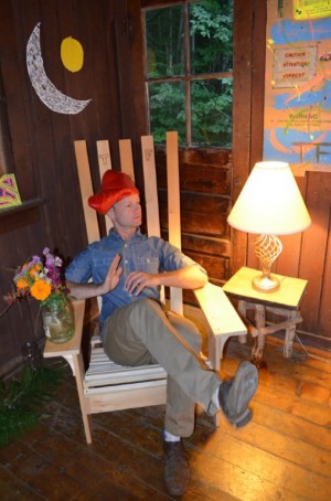 We also celebrated our MOFA event (Museum of Farm Art) that Saturday evening, capping our week-long efforts. We enjoyed fancy hors d’oeuvres and a wide range of artistic expression. We admired our community’s creativity – ranging from beautiful benches and Adirondack chairs; to fine paintings and collages; to photography and even an interactive musical instrument. It’s amazing to witness so much creativity and skill in expression within one small community. After we walked around enjoying the visual art, we sat down as the sun was setting to feast on performance arts.
