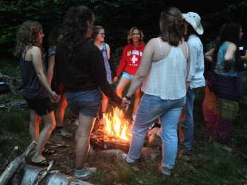 - Interdependence Day: On July 10, we all celebrated Interdependence Day at F&W. This is a big celebration that ends in an enormous bonfire. Indian Brook campers spent many mornings and afternoons in the days preceding Interdependence Day gathering birch bark, collecting brush, and chopping huge logs for the bonfire with their newly acquired axe skills. Indian Brook campers also worked interdependently with Timberlake campers and staff on building the bonfire.