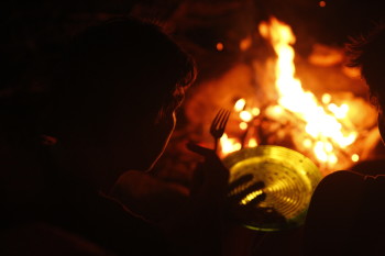 Our campers truly outdid themselves for this final fire, which was densely packed with brush and chunks alike. The smoke that first billowed out was incredibly dark and was a good omen for a big fire. Within minutes, the blaze was growing rapidly, the heat coming off the fire rising so quickly the canopy was shaking as though a heavy wind was blowing through. As sparks flew upwards, faces followed, mesmerized by the dance of rising and falling embers. As the group was called to dance and song, we were able to add to the passion and heat. I think this was the perfect Naming to close out the summer.