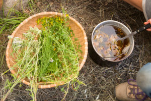 When we weren’t building our home, we were practicing archery, swimming in the nearest swimming hole, gathering herbs from the meadow to make tea and salve, and learning survival skills for our 24-hour solo. Upon our return to Indian Brook, we also did some trail service work; clearing away trees blown down on the trails we use to hike to our site.