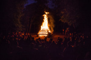 The second session is cruising along and already it’s amazing to think of all that we’ve accomplished in our time together. Giant bow drill, burl harvesting, rod less fishing, raft building and black smithing are just a few of the great activities that counselors and campers alike have led and pursued. Returning and full session campers are doing an admirable job of welcoming all seven of our newest community members, all of whom recently received names at our final Naming Ceremony of the summer. The campers fire-making expertise was apparent as the Naming Fire burned brightly well into the evening despite rain throughout most of the day.