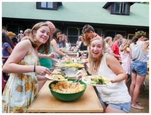 Last week at Indian Brook was very much about “farm” and “wilderness.” Our senior lodge campers were out on their 5-day wilderness trips – backpacking, canoeing, and rock climbing in Vermont, New Hampshire, Maine, and the Adirondacks. Trips are often one of the more challenging aspects of a camper’s summer because people are out of their comfort zone in new environments that are sometimes physically or psychologically challenging. In order to meet all campers’ needs, we offer trips that have different levels of physical demands and require various types of skills. Some campers were challenged on the Stratton Mountain trip, which offered the opportunity to backpack for two nights to Stratton Pond, then climb to the top of Mt. Stratton and enjoy the view from the fire tower while leaving packs below at a base camp.