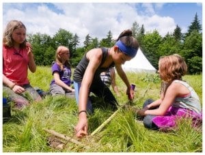 Red Spruce Grove is the newest member of the Farm & Wilderness family. We are a small wilderness community for girls 11-14. This summer was full of productive projects, learning new skills and friendship building! Our big projects this summer included two new physical landmarks in our meadow: an A-frame structure and a firewood shed.