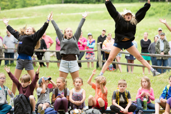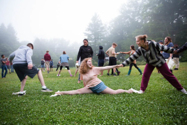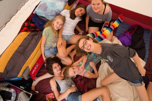 In the apple orchard, arriving Red Spruce Grove campers dropped their bags in a circle of six large tents. One girl barely glanced back at her parents, shouting “goodbye, I’ll miss you eventually!” Inside, six returning campers piled on top of each other, all interrupting, the air crowded with old stories retold and catching up on new ones. Twenty feet away in another tent, two new campers sat on their air mattresses, quietly writing in notebooks.