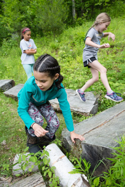 In the Indian Brook first lodge, some girls barely set down their backpacks before they bounced out of Woozles cabin and started leaping from log to log around their fire pit. An older sister appeared, asking “Did you set up your bunk? Mom sent me to find out.”