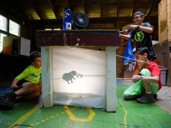 full size 4×8 foot chore chart with moveable slots for each cabin and chore. Also, began the actual siding of our new kitchen building. Those campers will walk past their handiwork several times a day every day there are at TL and be able to say “I drove in those nails, I did that.” In Barns and Gardens, they made cheese, visited our pasteurizing facility, hiked to the Plymouth Cheese Factory and kept our animals and plants well. Waterfront began their first swim clinics, as well as boating. Staff have been doing a lot of extra lifeguarding for all the extra dips and cool-off times during this heat wave. Outdoor Living Skills taught basic skills of fire and carving and also helped with the Interdependence Day Fire. Arts have made an ornate shadow puppet theatre and Rocks and Ropes have been climbing at various sites around camp.