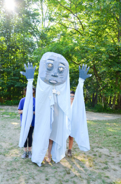 We embarked on a procession from the waterfront to the main lodge while almost a dozen campers helped us carry the giant puppets made from recycled materials and scrap fabrics. Moments like this captured what art-making at IB embodies: a do-it-yourself enthusiasm for creation in the name of community building.