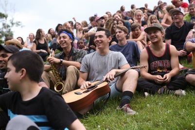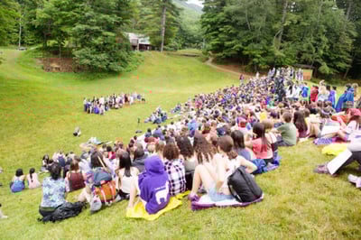 Instead of a celebration with fireworks and sparklers in early July, all of the Farm & Wilderness camps come together on July 5 for Interdependence Day on a grassy hillside and lawn.