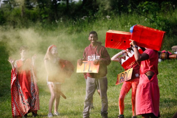 Saltash Mountain campers arrive at camp and almost immediately leave for their cabin trips, but before cabin trips go out, there is a brainstorming meal where campers offer fantastical ideas for the Interdependence Day skit. The support staff then uses those ideas to write a skit while cabin trips are out. When campers return, we break into prop-making and song-writing groups.