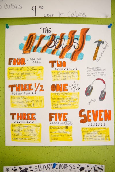 Yesterday we welcomed campers for our Second Session at the farm. Today they are getting oriented in our schedule, skills crews, and community norms.