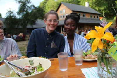 Thursday evening included our Harvest Banquet. The spread crafted by our Kitchen Crew was simply scrumptious! The chickens that we raised and harvested were slow-roasted over an open pit by Ruby, our Head Chef. Ruby and her team used the vegetables, herbs, and flowers gathered by the campers earlier in the week to create a delicious array of dumplings, stuffed breads, salads and sweet deserts. During the meal, various groups of campers “affirmed” staff. An affirmation is a note of gratitude shared in front of the community, and a simple bead on a hemp string is presented and worn as a necklace by the recipient. This practice of gratitude is so essential and important for not just campers, but staff as well, to practice. Often enough, we do not thank the people in our lives who love us, and support our own growth and happiness.