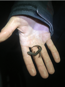 My shelter-in-place buddy and Flying Cloud Director, Elliott Siegrest-Jones, holding an adult Eastern Newt last week, in the glow of a headlamp.