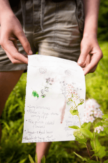 If you can pick one flower without harvesting more than 1/6 of the patch, bring a flower home to press and add to a collection. You can easily make a flower press at home, using printer paper or cardboard as blotter paper, and weighing down the flower between several heavy books. You could even make a mini field guide using the pressings, tracking down the scientific name and some fun facts about the plant. Newcomb’s Wildflower Guide is an excellent resource for identification. Finding wildflowers as they bloom for the first time in spring is like discovering treasures hidden in the leaf litter!